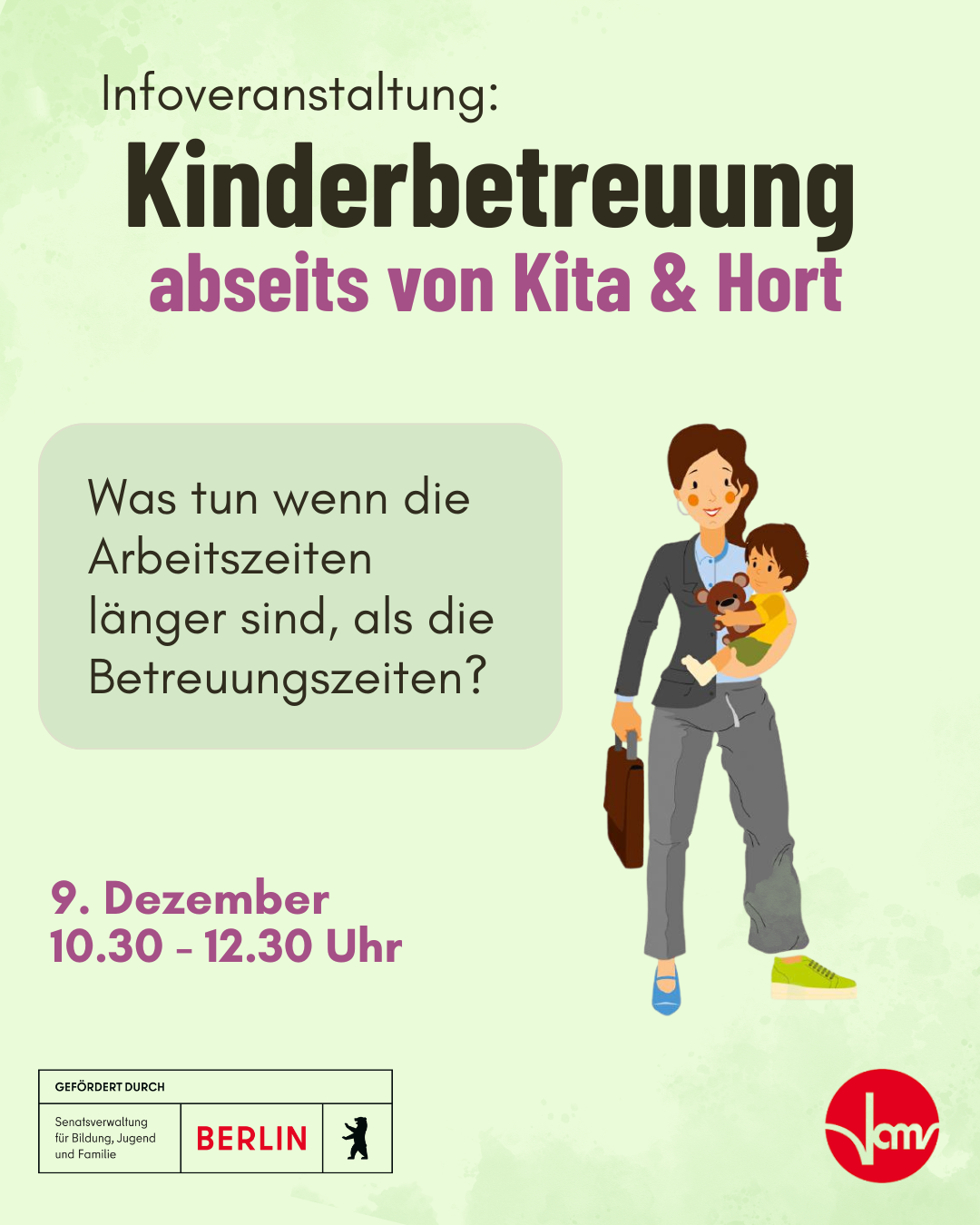 Dann bist du genau richtig bei unserer Informationsveranstaltung bei der wir verschiedene Möglichkeiten der Kinderbetreuung außerhalb von Kita und Hort vorstellen. Wir informieren über flexible Betreuungsmodelle, alternative Angebote und Unterstützungsmöglichkeiten. Nutzt gerne die Gelegenheit zum Austausch und um Fragen zu stellen.
